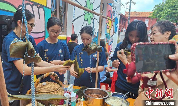 异邦小一又友搭客有趣盎然体验龙舟玩物。 黄禧燕 摄 皇冠球盘电脑网址开幕式上,抛粽子、游龙舟、裹粽子技艺展示等行径精彩纷呈,眩惑了来自天下各地的搭客与当地内行参与、不雅看,现场节庆悔怨浓厚。 ![]()
