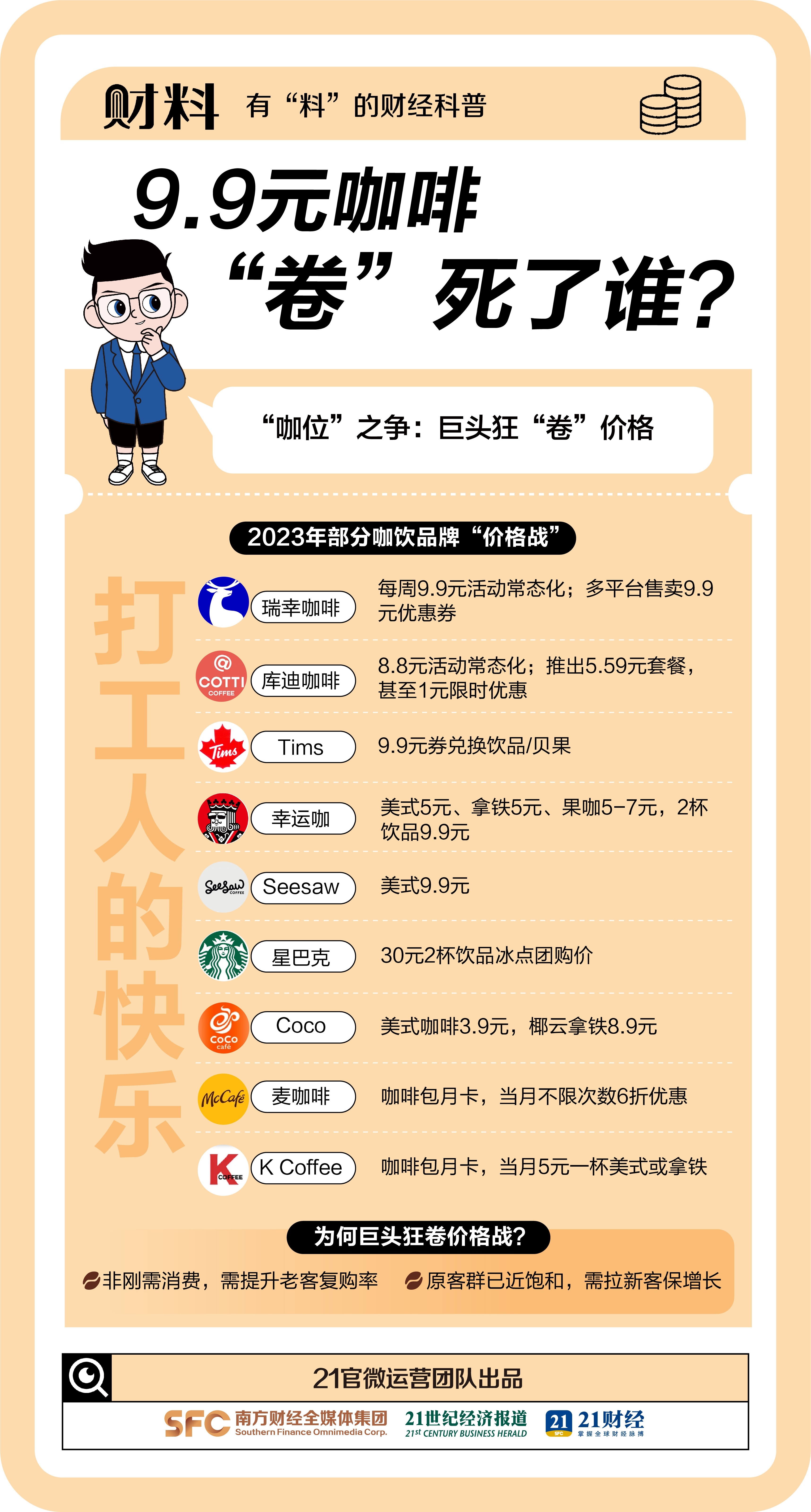 比年来,越来越多东说念主习尚“咖啡续命”,数据露出,国东说念主昨年喝掉了30万吨咖啡,咖啡市集发展迅猛。 “不是星巴克喝不起,而是国产更有性价比”。瑞幸、库迪等巨头狂卷价钱,各大品牌纷纷加入,打工东说念主收货答应,行业也一时辰火食随处。酣战之下,谁被“卷死”,谁能笑到临了?本期21财料带你一睹这场争夺的最新战况。 皇冠網址
